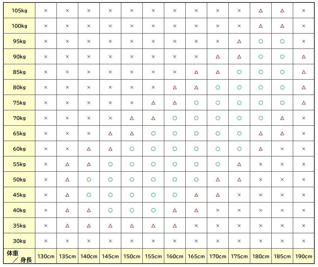 以下の範囲に収まらない方は既製品スーツとしてのサイズ展開が無い為、スーツのレンタルはご用意が出来ません。