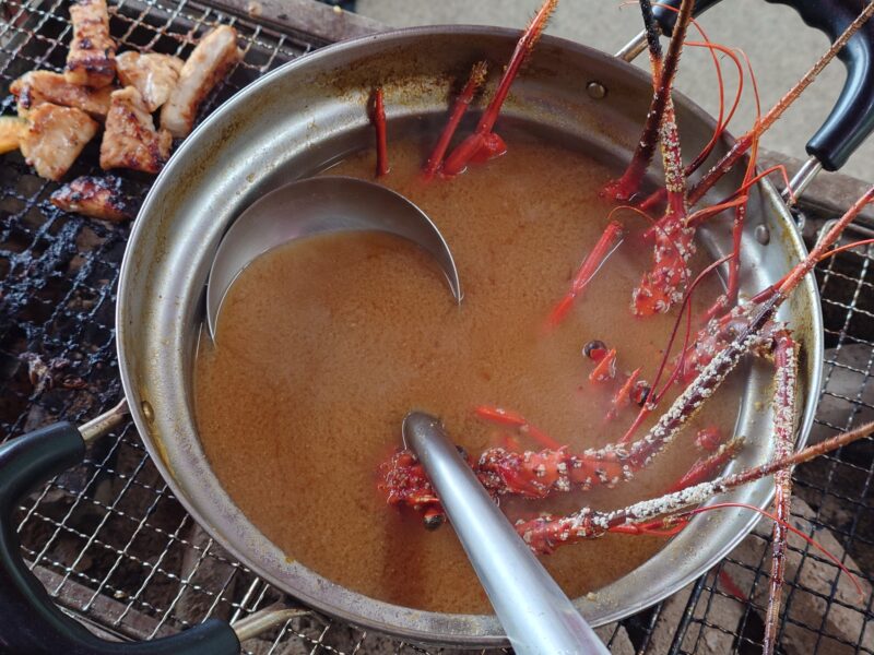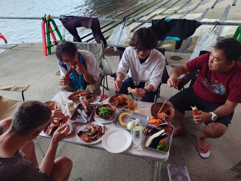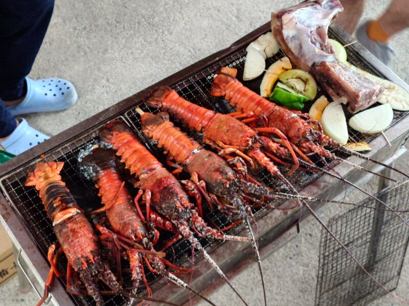そして今回の目玉はやはりこれ!ダイビング後の伊勢海老BBQ 🦐🔥