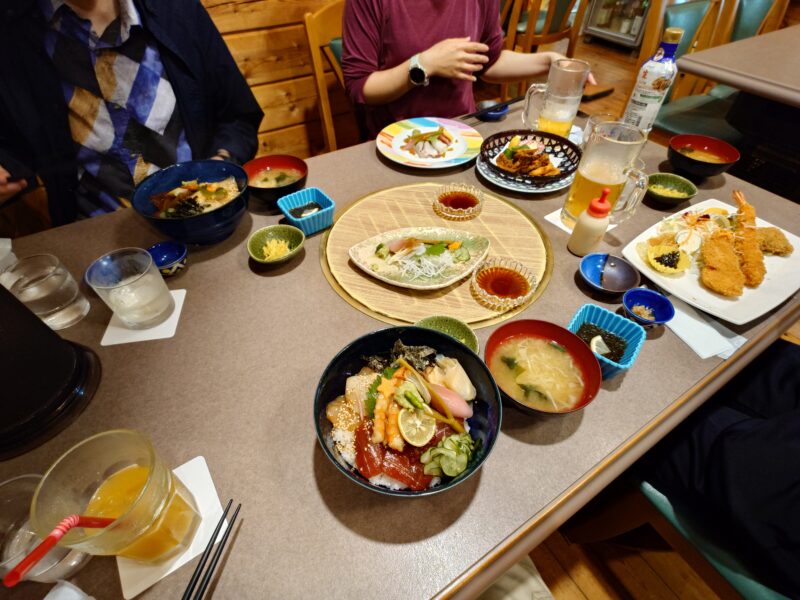 他にもミックスフライ、べっこう丼など、テーブルいっぱいに、皆それぞれのご馳走✨
