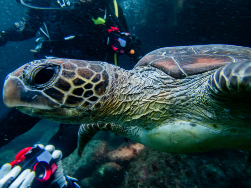 潜ってすぐに巨大なアオウミガメ登場🐢(たぶん3月のツアーで出会った子かな?)