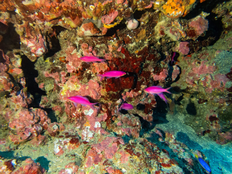 他のポイントは軒並み潜れる海況ではなく、船も伊豆大島行き以外ほとんど欠航するレベルの強風というコンディションでしたが……