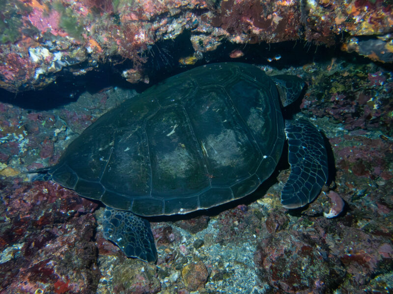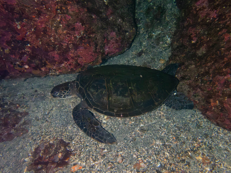 ナイトでは寝ているアオウミガメにもたくさん遭遇🐢💤